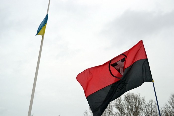 В это же время «свободовцы» потребовали от «Батькивщины» убрать партийный флаг, развевавшийся за памятным знаком. Началась потасовка. Драка длилась не более 5 минут — дерущихся пристыдили священнослужители, присутствовавшие на церемонии.