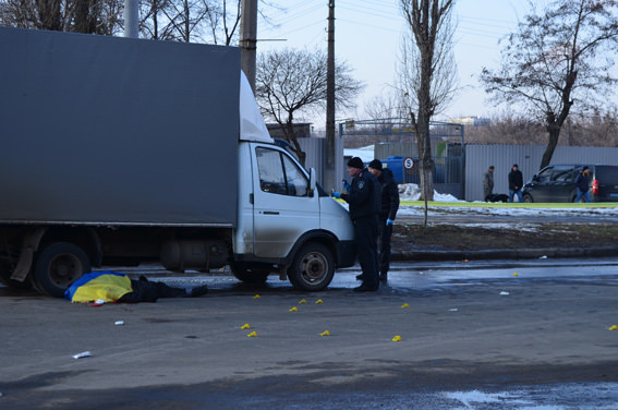 Руководитель, начальник уголовного розыска Первомайского райотдела Вадим Рыбальченко, шёл на пять-семь метров впереди. Подполковник получил смертельное ранение. Также, как и евромайдановец Игорь Толмачёв, умер на месте.