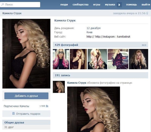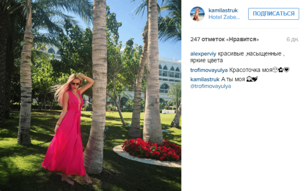 Об этом свидетельствуют фотографии со страницы Камилы Струк в Instagram, которые она активно постила в сеть.