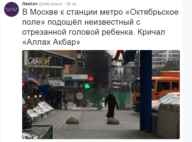В Москве няня обезглавила ребенка и появилась у метро с криками "Аллах акбар"