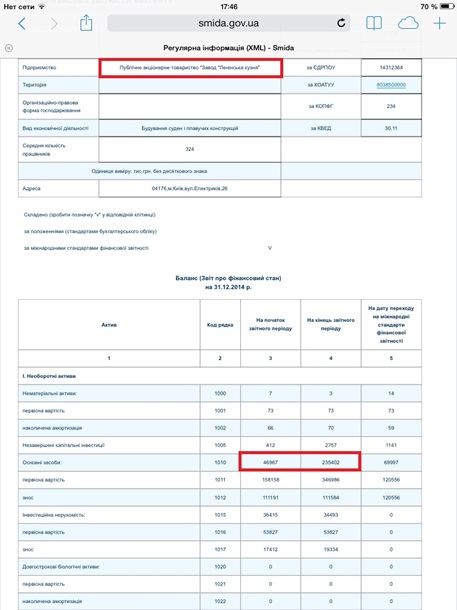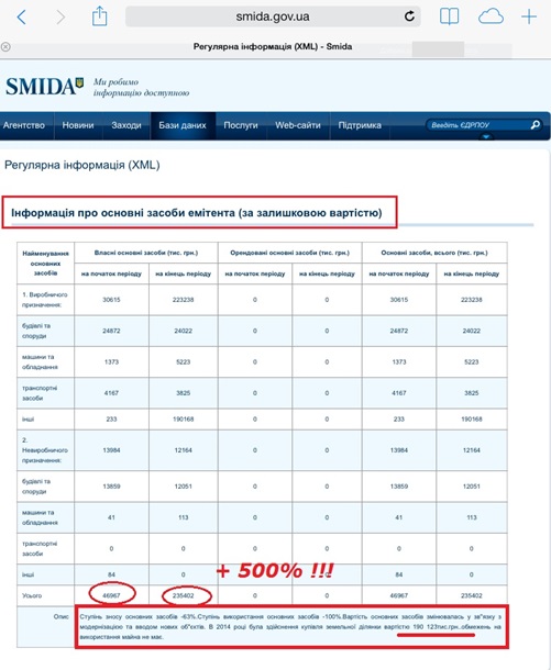 Размещенный на официальном правительственном ресурсе smida.gov.ua финансовый отчет завода «Ленинская кузня» за 2014 год подтверждает: в течение первого года президентства Порошенко официальная стоимость активов только этого бизнеса выросла почти в два раза: с 418 до 706 млн грн.
