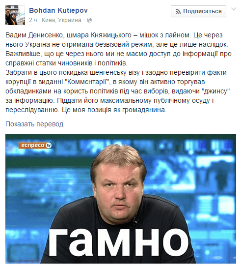 Кроме того, он прокомментировал пост депутата Вадима Денисенка: