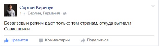 По одной из версий, задержка инициативы в отношении Украины связана с референдумом в Нидерландах, который состоится 6 апреля. По другой версии - речь идет о том, что Украина вероломно нарушила взятые на себя обязательства по безвизовым законом, внеся в один из них (об электронном декларировании) поправку, которая не понравилась европейцам. А так как эту поправку вносил Вадим Денисенко, то в него и полетели все стрелы. Наконец, сам Денисенко выссказал третью версию провала - мол, ЕС и не собирался вводить для нас безвизовый режим, а потому просто искал повод, что отказать. Собственно, его заявление в ФБ и было вчера самым ярким по безвизовой теме. Причем пост в ФБ видимо показался ярким не только нам, но и еще кому-то. Поэтому нардеп его через некоторое время удалил (или скрыл). Но "Страна" успела сделать его скрин.