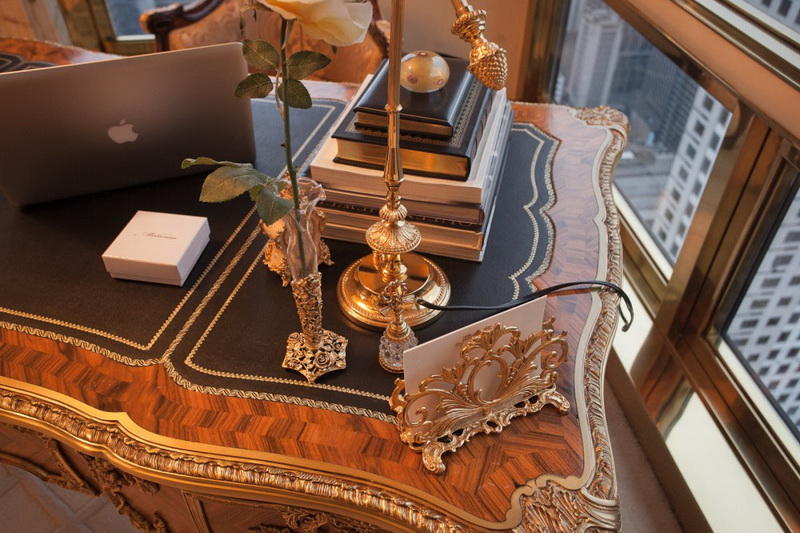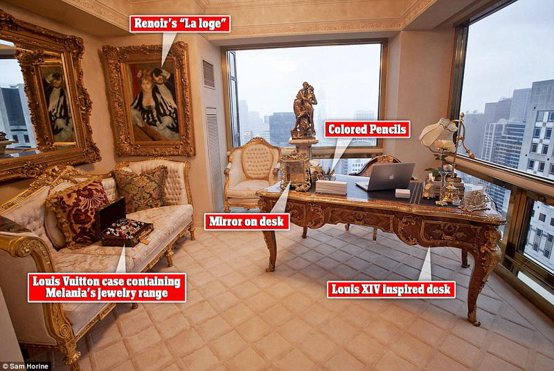 В этой квартирке Трамп живёт вместе с супругой Меланьей и сыном Бэрроном. Интерьер пентхауса, расположенного на трёх верхних этажах Трамп-тауэр в Нью-Йорке, в 1983 году разработал дизайнер Анджело Донгия.