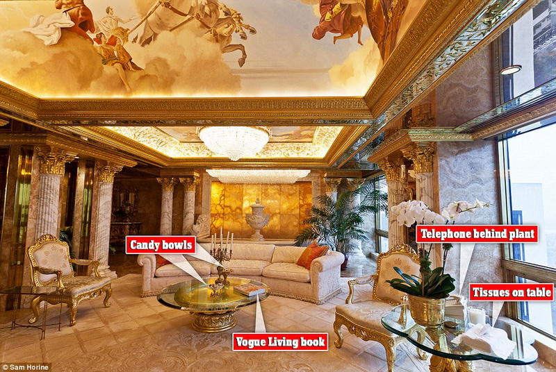 Пентхаус оценивается в $100 миллионов. "Дональд Трамп надеется переехать в Белый дом, но, возможно, ему будет трудно сказать "прощай" своему нью-йоркскому пентхаусу", - отмечает The Daily Mail. Ещё бы, даже входная дверь в пентхаус оформлена золотом и алмазами. Куда там Овальному кабинету...