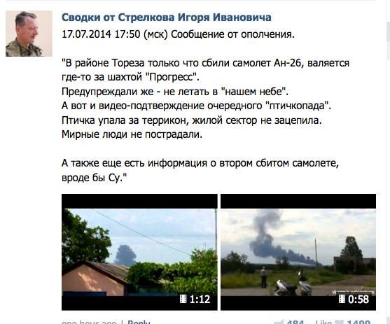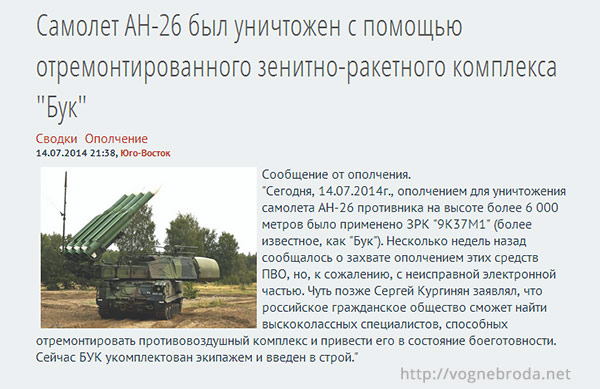 Тогда они еще не добрались до места падения и считали, что сбили украинский АН-26.