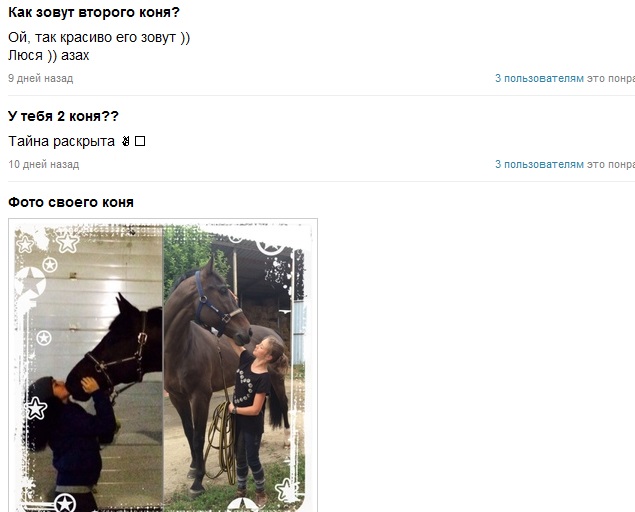 Аліса Труханова займається кінним спортом і має двох власних коней. Першого звуть Самбо.