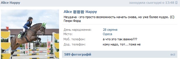 Молодша донька регіонала, Аліса, почувається у соцмережі дещо вільніше. Можливо, тому, що зареєстрована не під справжнім прізвищем, а під ніком Alice Happy.