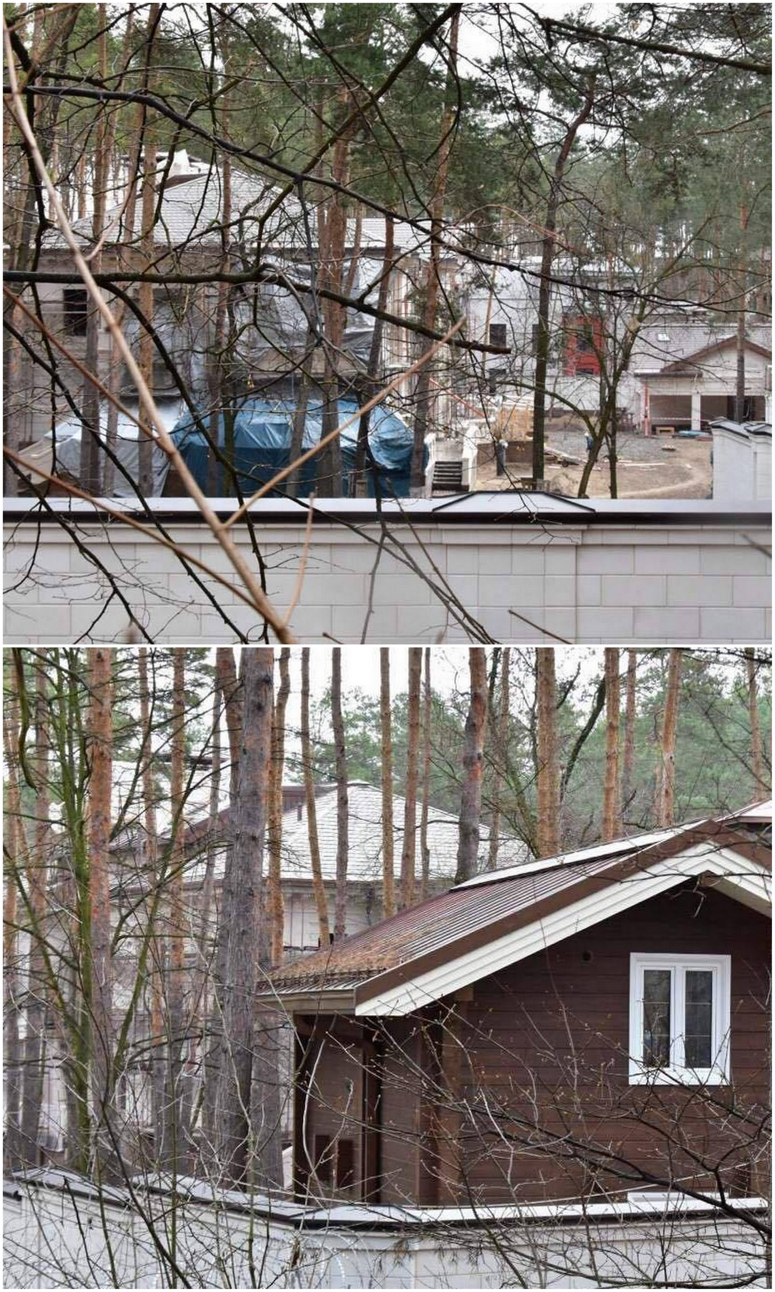 И действительно, живут тут не простые смертные. По данным из кадастровой карты видно, что чуть ли не половина этой частной территории принадлежит семейству экс-губернатора Дорецкой области и крупного предпринимателя Сергея Таруты, а вернее его старшей дочке Екатерине и племянницам Ирине и Анне (дети мариупольского миллионера Александра Таруты, родного брата Сергея). У телеведущей Кати на участке в 40 соток стоит лишь забор и повалены деревья, видимо землю готовят к застройке. Та же картина и на гектаре, который записан на ее кузину Ирину. А вот на территории Анны Таруты за пятиметровым каменным забором полным ходом ведутся работы: возводят огромный трехэтажный особняк из белого кирпича, гараж на две машины и гостевой деревянный коттедж.