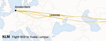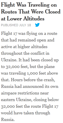 Кроме того, The New York Times со ссылкой на Евроконтроль и Федеральную авиационную администрацию пишет, что за несколько часов до взлета рейса MH17 Россия закрыла более дюжины воздушных путей на разных высотах: