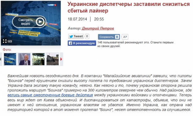 ГИПОТЕЗА: УКРАИНСКИЕ ДИСПЕТЧЕРЫ ПОВЕЛИ САМОЛЕТ ИЗМЕНЕННЫМ МАРШРУТОМ