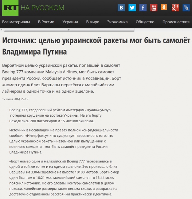 ГИПОТЕЗА: ЦЕЛЬЮ РАКЕТЫ БЫЛ САМОЛЕТ ВЛАДИМИРА ПУТИНА