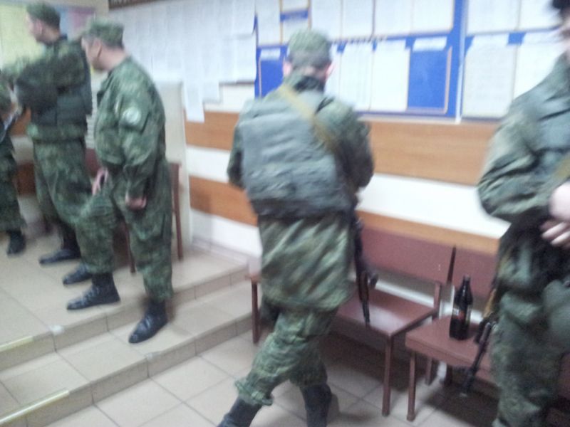 Менты с автоматами стояли в два ряда от входа в суд до рамки. Это было похоже на конвоирование всех присутствующих. Один из бойцов, пришедших поддержать Коростелева, побывал в плену. Сказал, что "очень похоже на Щорса, 62". Кто не в теме, по этому адресу в Донецке находится здание СБУ, в подвалах которого держат заложников.
