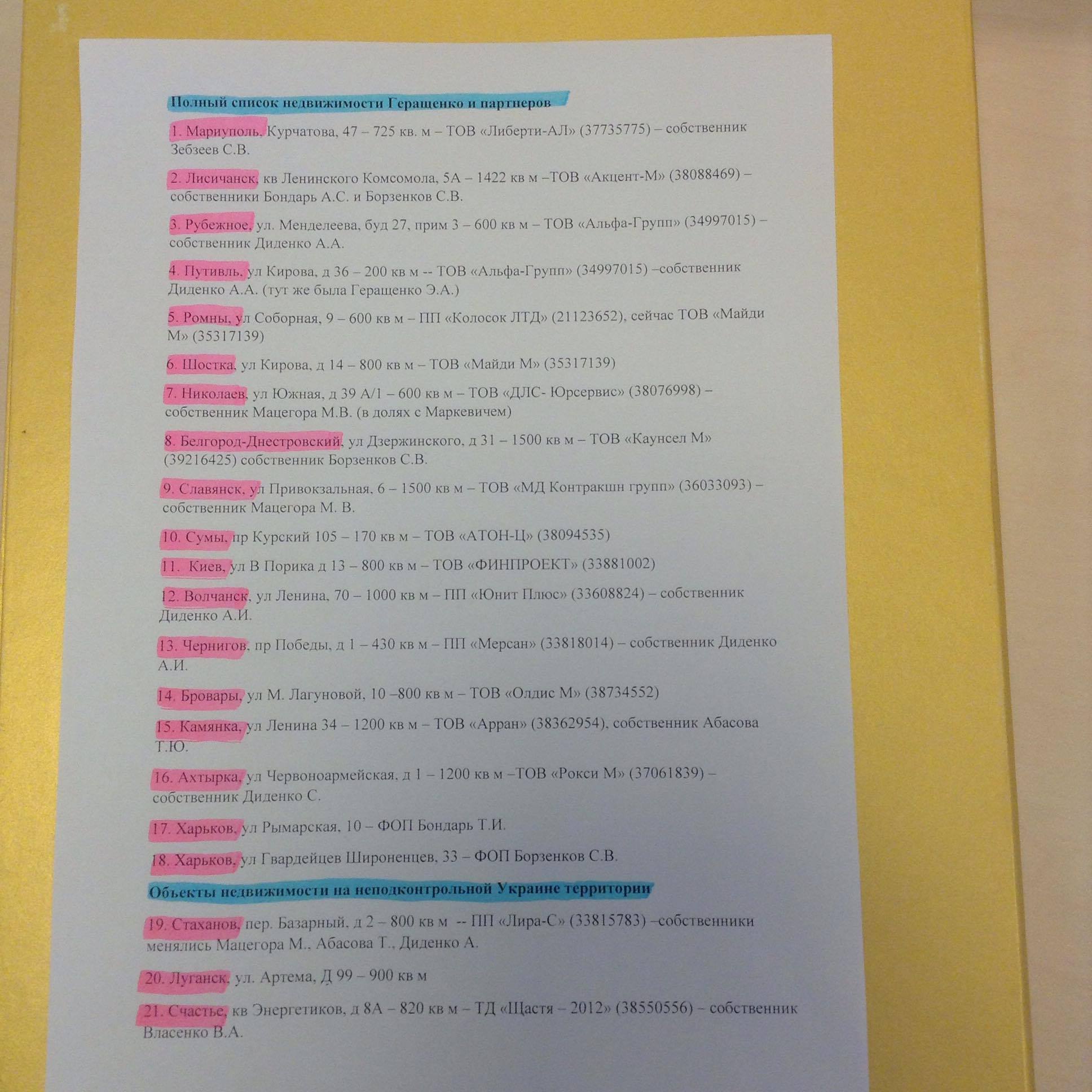 Все люди, перечисленные в списке, фигурируют в бизнес-схеме Геращенко и являются его друзьями, доверенными лицами, официальными помощниками в ВР и их родственники