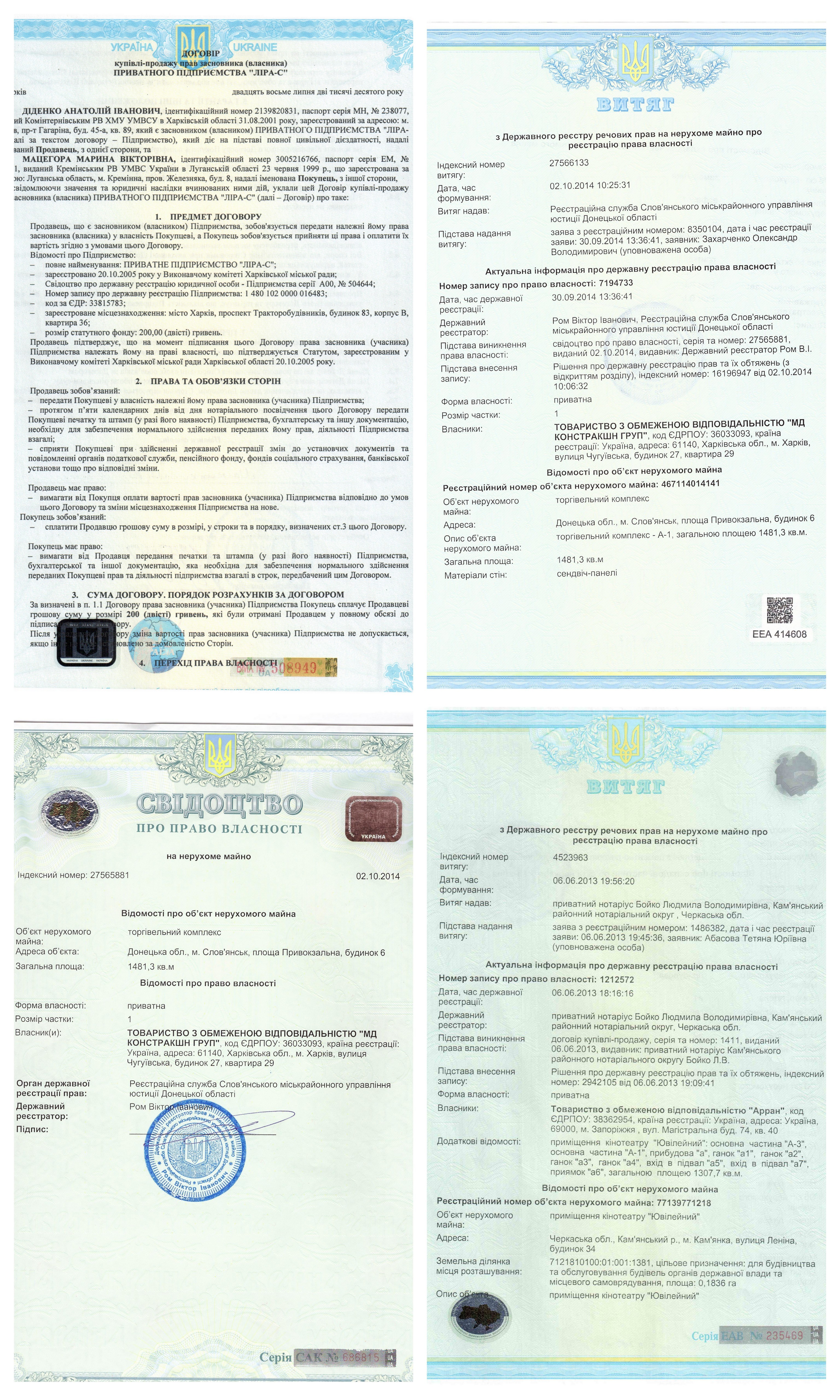 "Страна" получила сканы оригиналов выписок из реестра прав на недвижимость, свидетельства о купле имущества, регистрацию предприятий, которые упоминаются в материале.