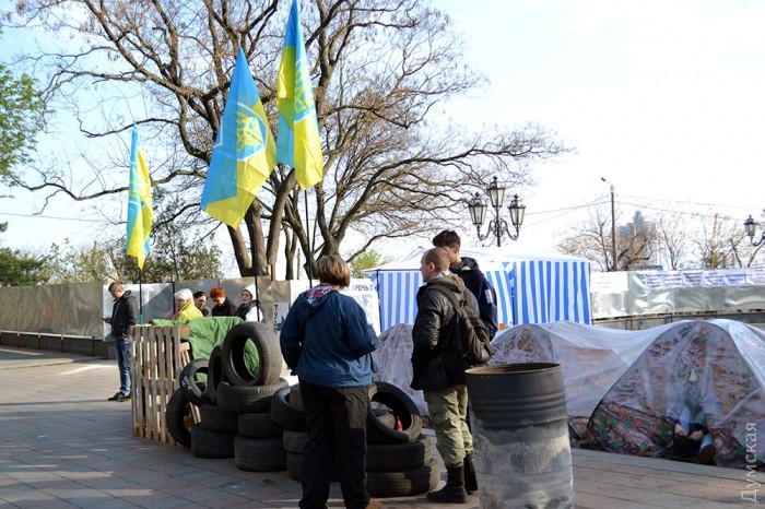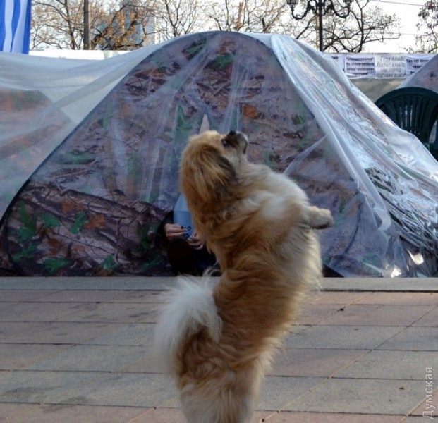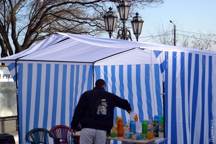 На Думской площади, у здания Одесского горсовета, вырос палаточный городок.