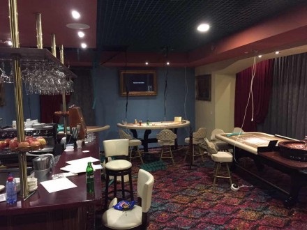 Также были обнаружены и изъяты игровые принадлежности: 23 покерных стола, 8 рулеток, 40 игровых автоматов, карты, фишки и другие принадлежности для работы казино.