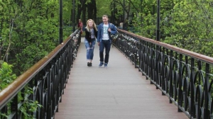 Вместо обещанного карпатского бука Мост влюбленных в Киеве застелили композитом. Вопрос о материале, который использовали при реконструкции моста, в фейсбуке задал фотокорреспондент "Вестей" Сергей Харченко.