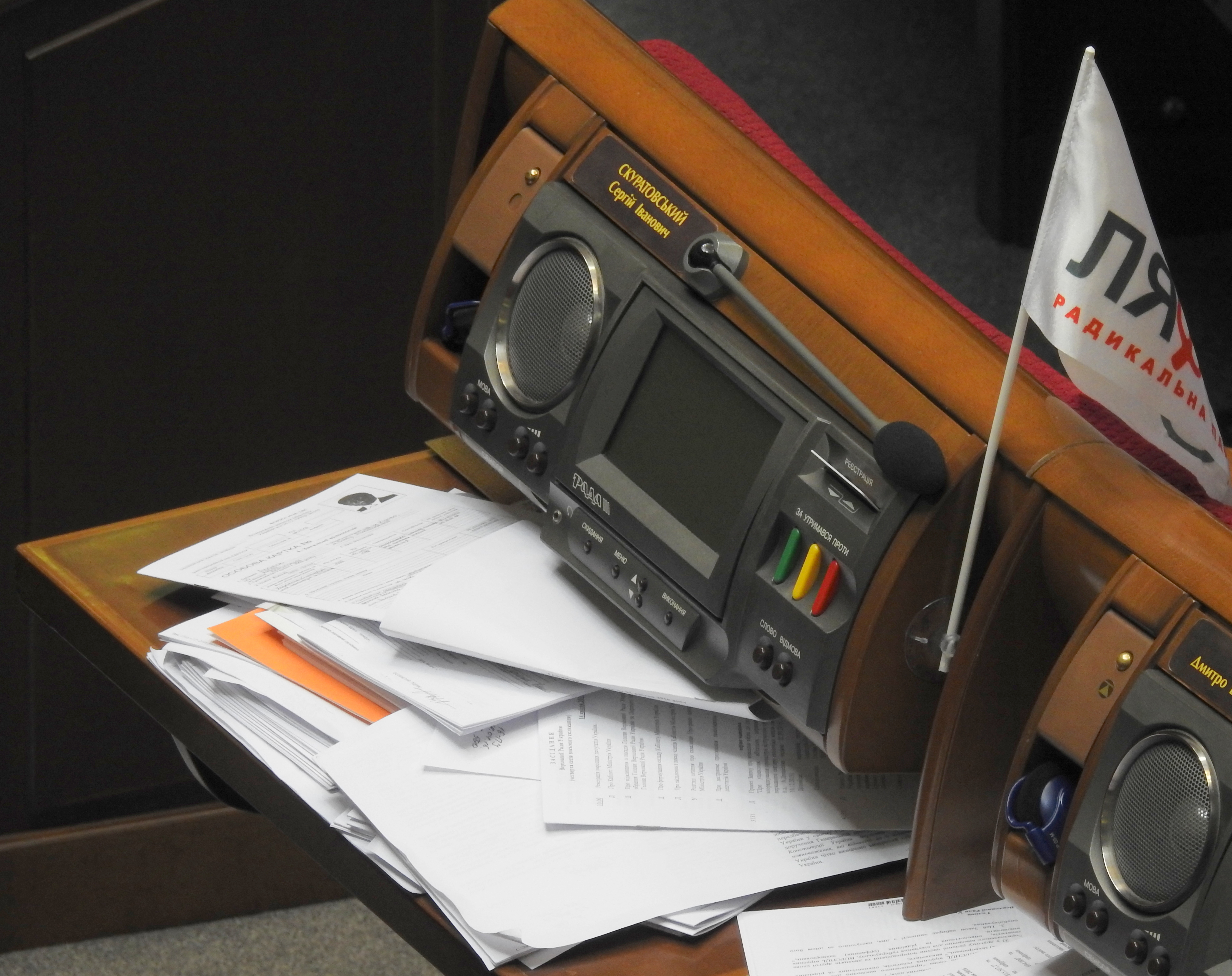 Во время расслабленного пятничного заседания за стол Скуратовского время от времени садился его коллега по фракции Дмитрий Линько. А под конец заседания сотрудник аппарата прошелся по пустым рядам и собрал все карты депутатов.