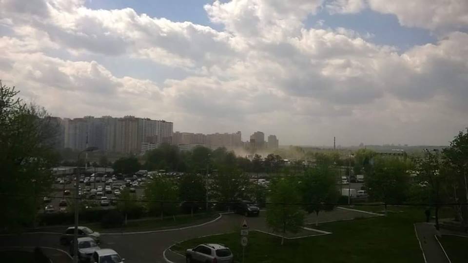 В Киеве в Дарницком районе над районом возле озера Солнечное наблюдаются большие облака пыли неизвестного происхождения.
