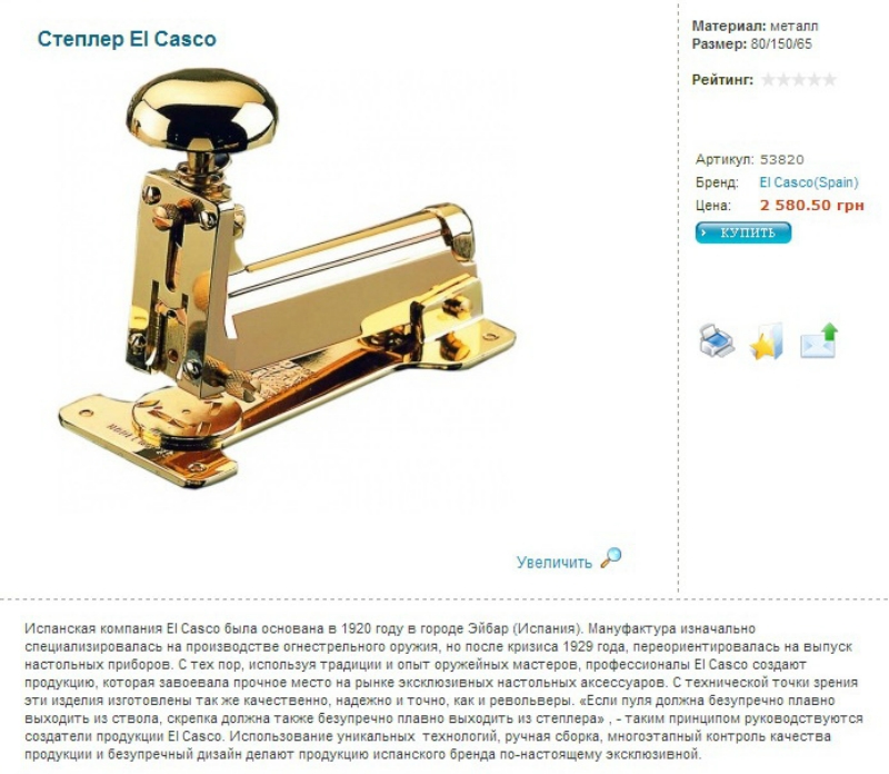 1. romakrivenko присмотрелся к ней и заметил эксклюзивный степлер испанской фирмы El Casco.