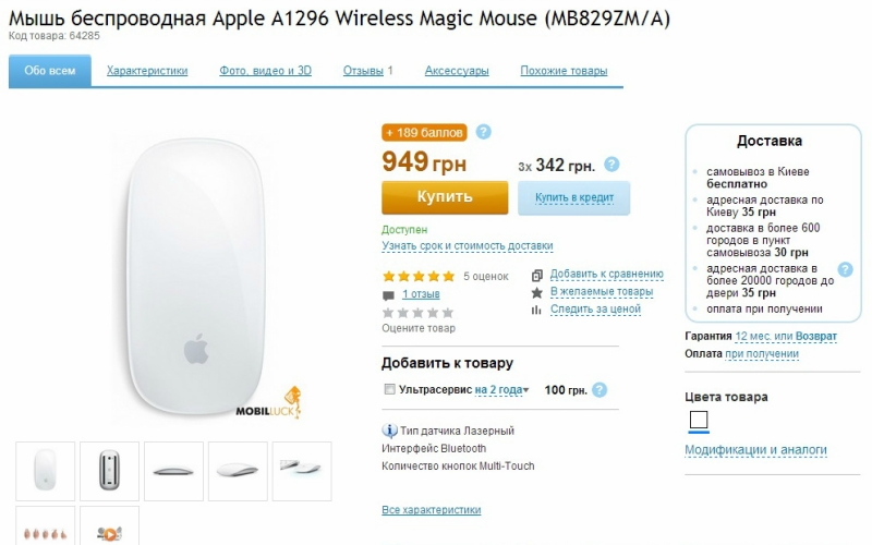 Надо же, беспроводная мышка Apple за 949 гривен.