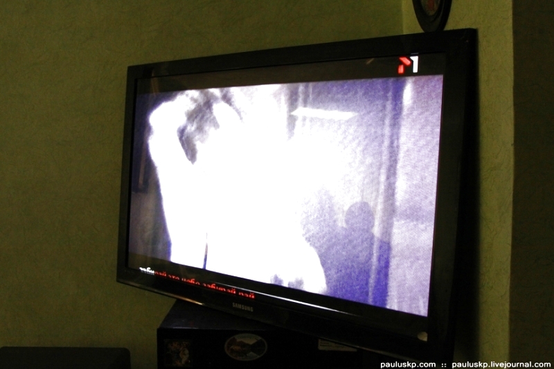 В кабинете борца с экономической преступностью стоит телевизор. Как он помогает разоблачать взяточников и коррупционеров - не знаю. На экране какая-то поп-звезда прыгала.