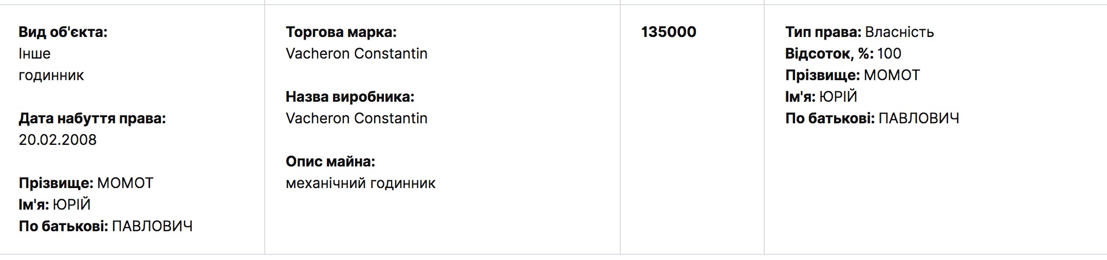 Meet Yuriy Momot — a graduate of the Ryazan Higher Airborne Command School, a Master of the National Academy for Public Administration under the President of Ukraine, a fan of expensive Lexus cars and Vacheron Constantin watches (the price of the manufacturer’s watch ranges from 500,000 to 7 million hryvnias).
