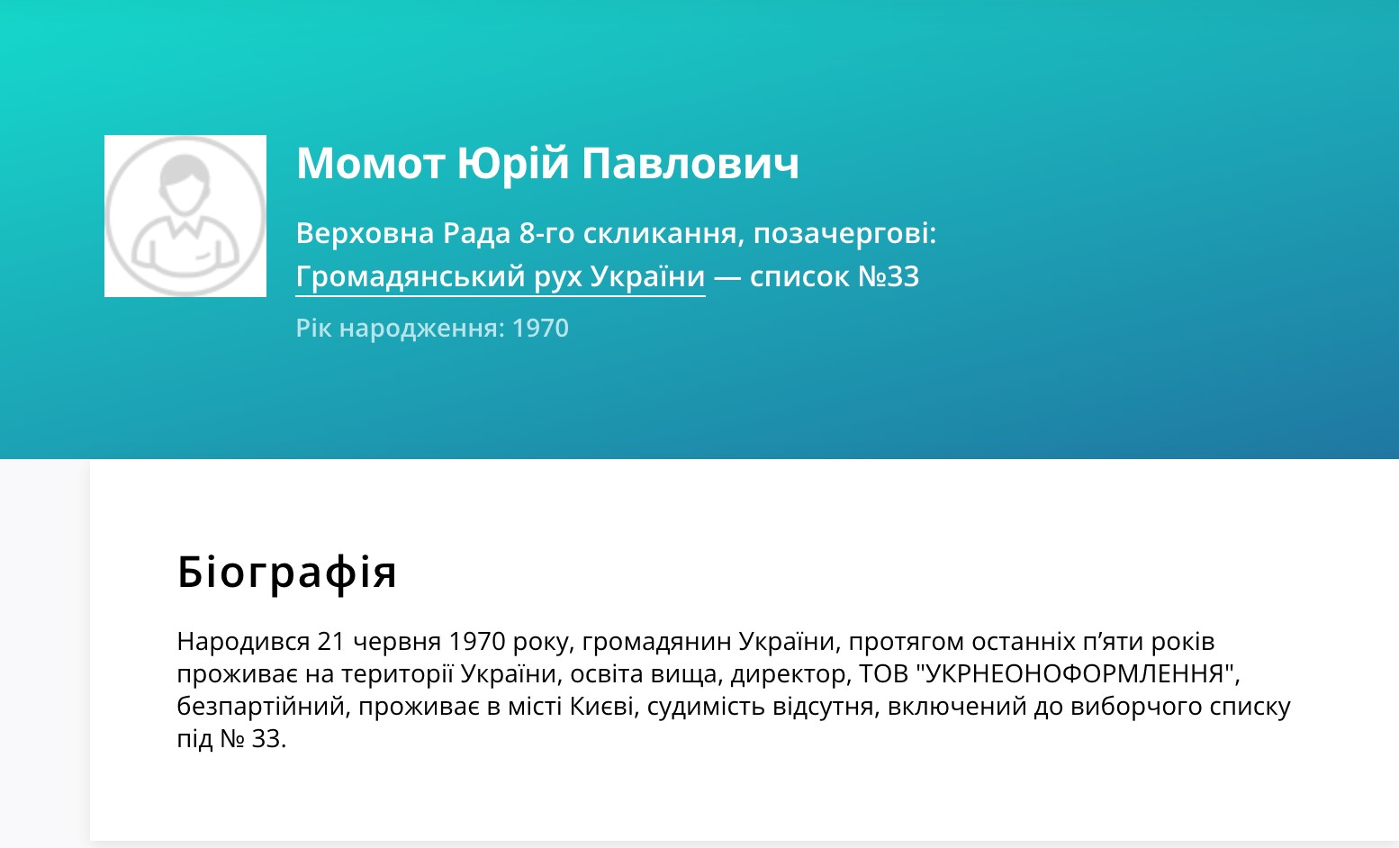 Over many years of his management activities, Yuriy Momot has been involved in various corruption schemes, organizational scandals, and has become a figure in multiple criminal cases. Momot is one of the vivid representatives of the Ukrainian middle-tier political elite and has vast experience in implementing corruption schemes and maneuvers.