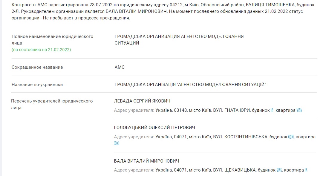 Among the founders of the Agency are Vitaliy Bala, Oleksiy Holobutskyi, and Serhiy Levada. Levada is a scandalously known developer, a godfather, and business partner of former regional Vasyl Horbal. Under Yanukovych, Levada was an advisor to the ex-head of the Kyiv City State Administration Oleksandr Popov and later joined the Kyiv City Council from UDAR.