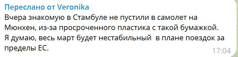 “Yesterday, a friend in Istanbul was not allowed on a plane to Munich because of expired plastic with such a piece of paper,” said one of the users.