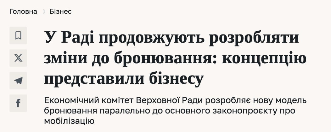 The Verkhovna Rada is discussing the possibility of reserving up to 50% of employees liable for military service