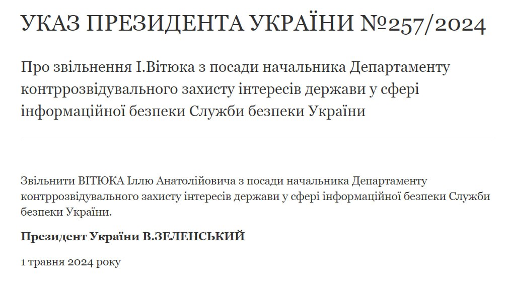 Zelenskyy fired Vityuk as head of the SSU’s cybersecurity department.