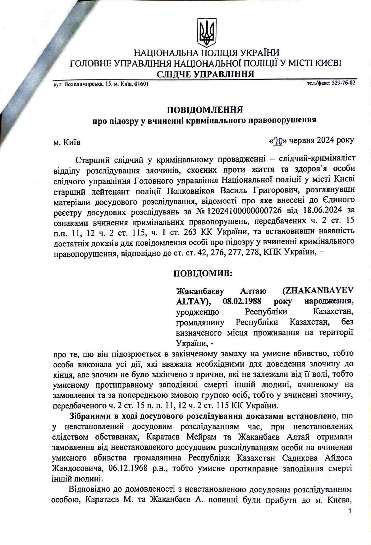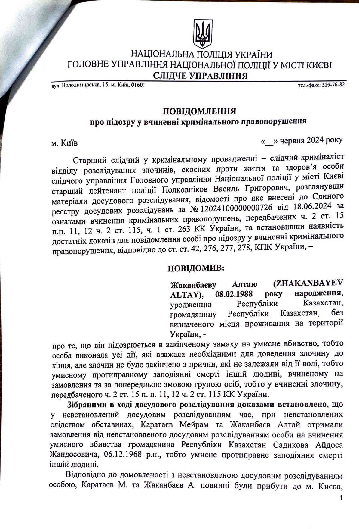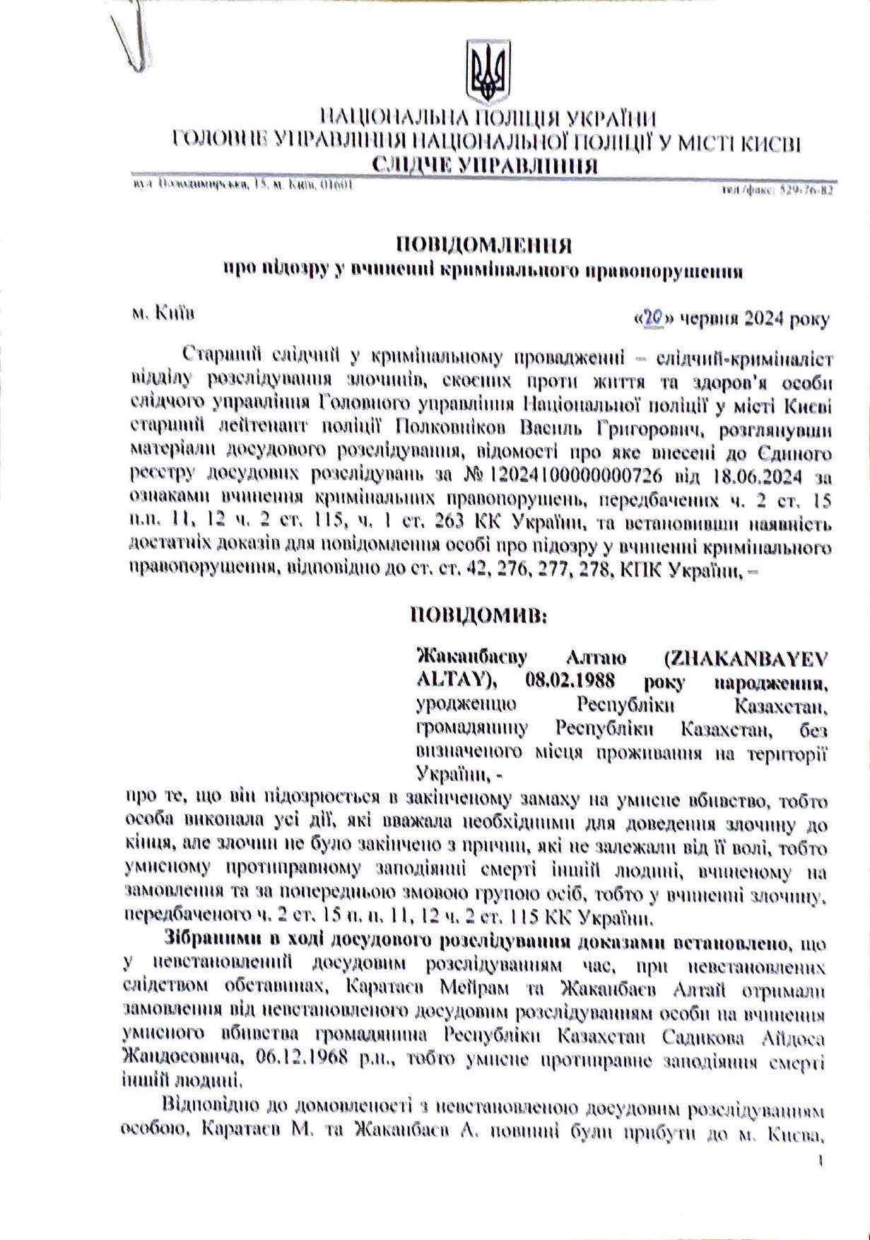 Topics: SuspectMurder attemptKyivAidos Sadykov