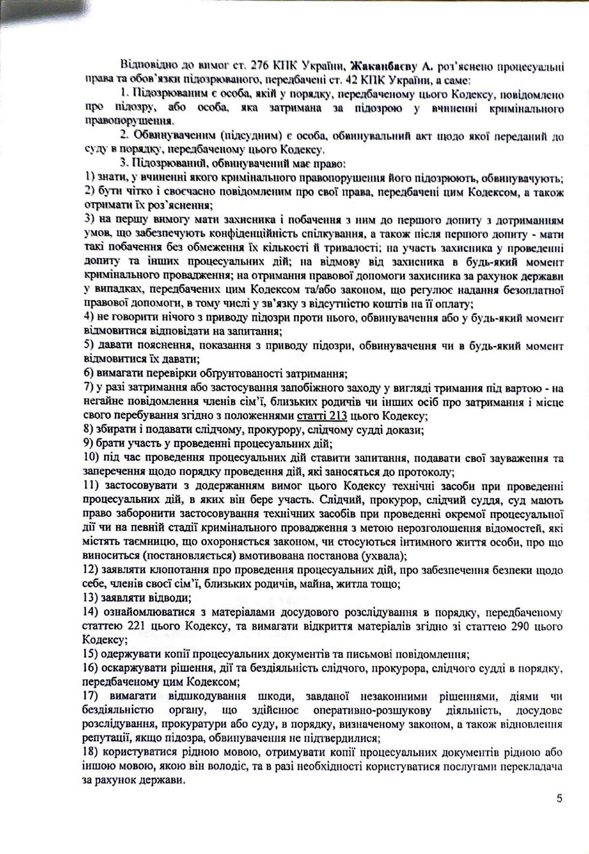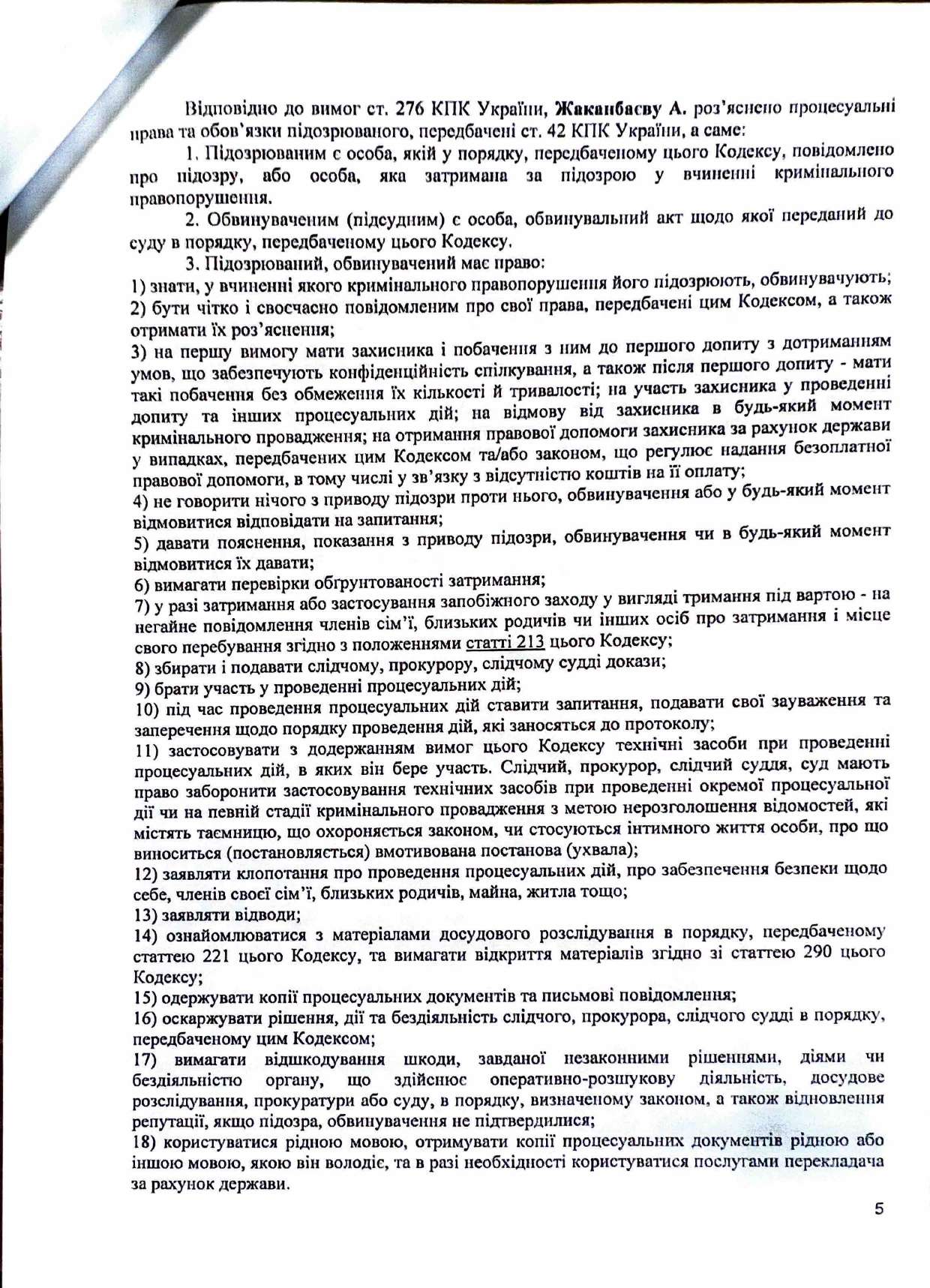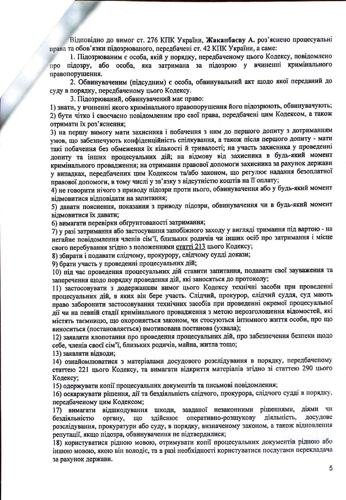 Notification of suspicion of committing a criminal offense to Zhakanbayev.