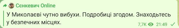 The mayor of Mykolaiv, Senkevych, confirmed the explosions in the city.