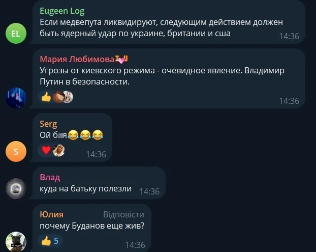 Відповідні коментарі вони залишають в соцмережах. Так, Буданов зазначив, що спроби замахів, на жаль, не вдалося реалізувати.