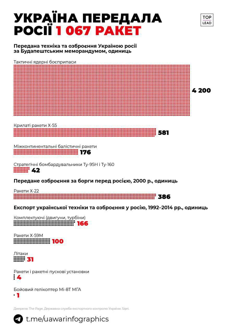Ukraine in 1994 transferred to the Russian Federation about 4,200 tactical nuclear warheads, – infographic