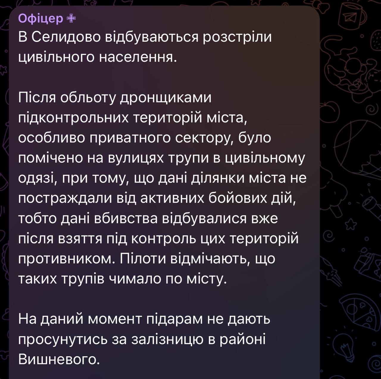 Russian troops that have seized part of Selydove are massively killing civilians, — serviceman «Alex».