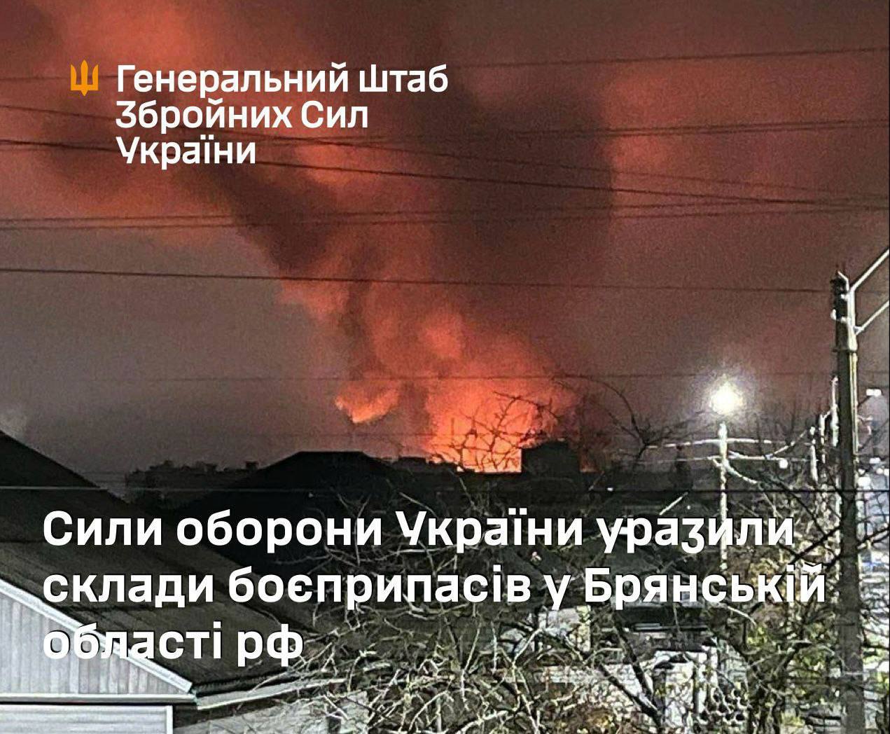 Last night, Ukraine struck an ammunition depot in the Bryansk region of the Russian Federation, reports the General Staff of the Armed Forces of Ukraine.