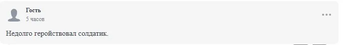 "Треба воювати тут, а не в Україні, шкода, що Пригожина вбили с*чари московські"; "Собаці собача ... як там далі?", "Недовго героював солдатик". "А продовжував би торгувати наркотиками – був би живий", — писали користувачі у коментарях під новиною про загибель окупанта.