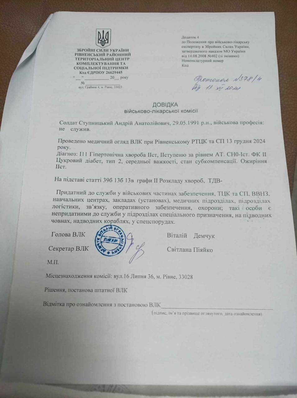«Despite serious health problems – first-degree hypertension (with a blood pressure of 180 over 100 even at the time of stopping), diabetes, and other illnesses – Father Andriy was driven from one training ground to another all day. At one of the Rivne training grounds, they refused to accept him and sent him home, yet the priest is still not released from TRC control, being held as if in prison», – the statement reads.