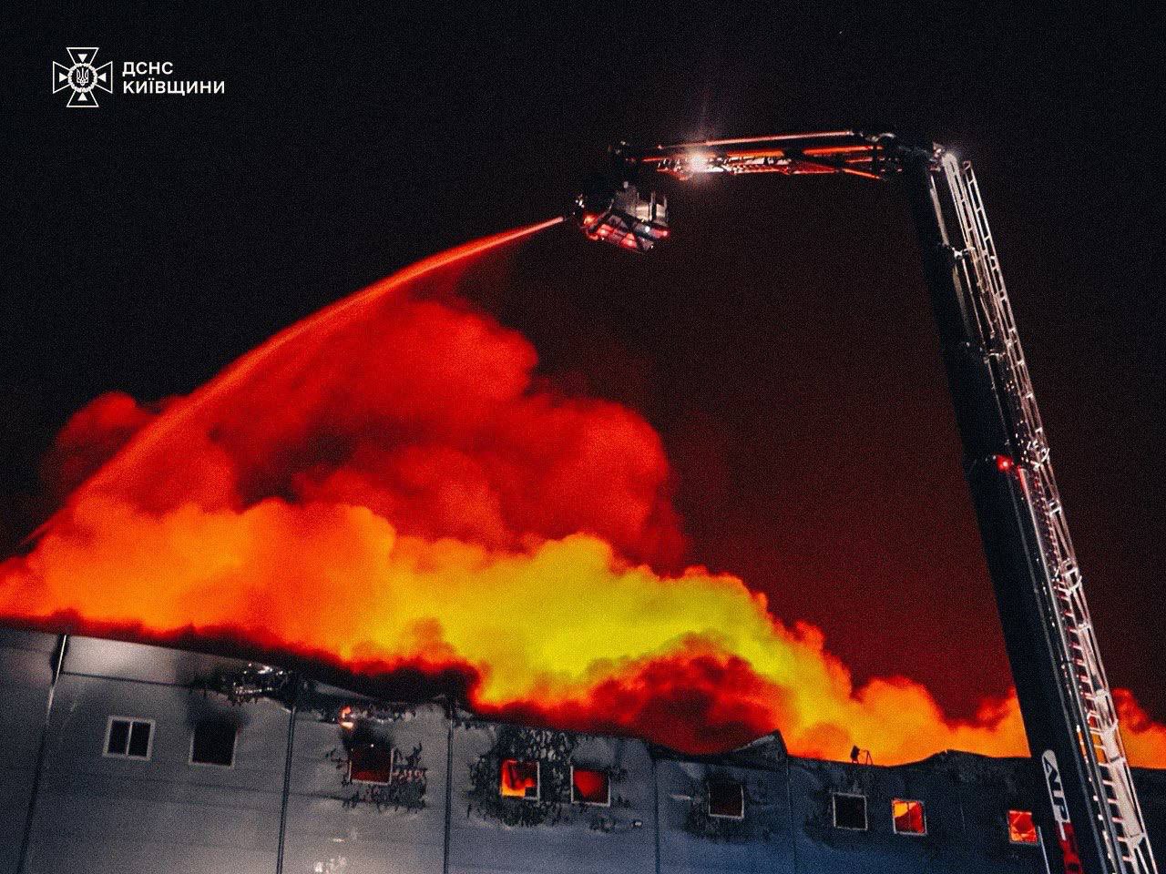 After the shelling in the Boryspilskyi district, warehouses are on fire