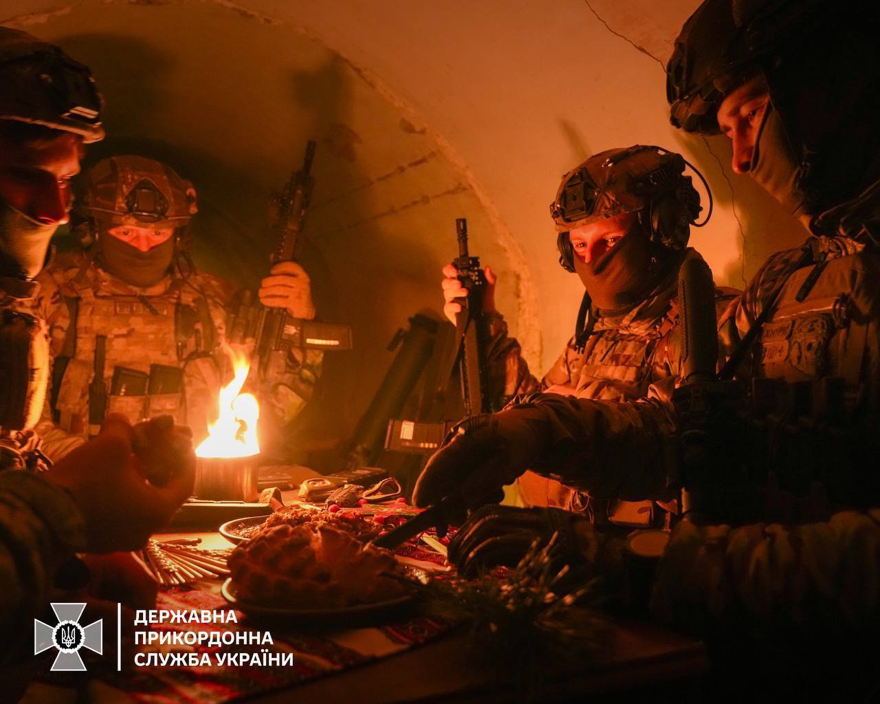 The fighters of the State Border Guard Service, who continue to resist the Russian aggressor on the front line, demonstrated their celebration of Christmas Eve. Our defenders gathered inside a shelter around a traditional Ukrainian table with kutia and some other dishes.