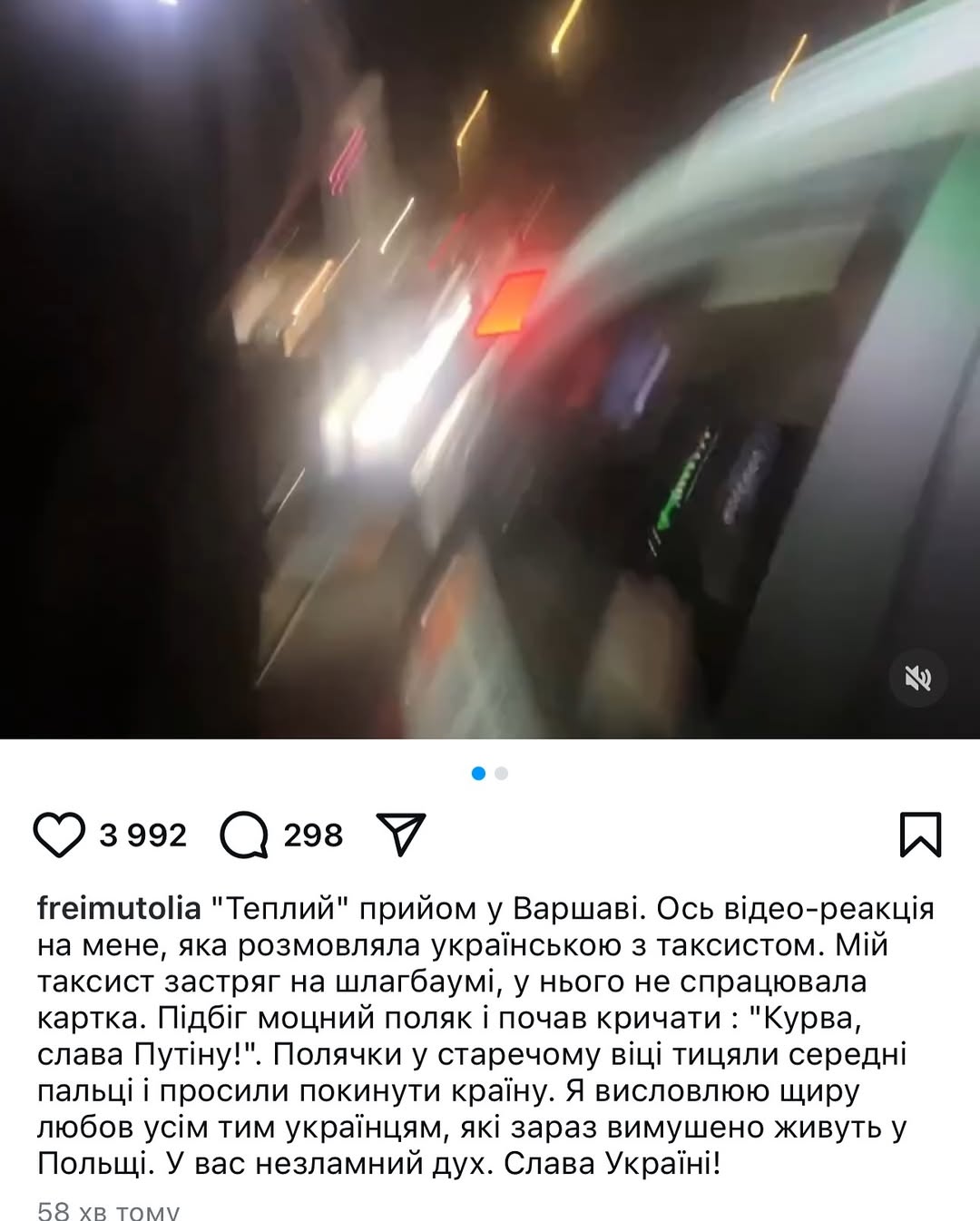 On her Instagram page, Freimut shared the details. She said that the taxi driver she was with got stuck at a barrier due to a card malfunction. At that moment, a man approached them and started shouting: "Glory to Putin!".
