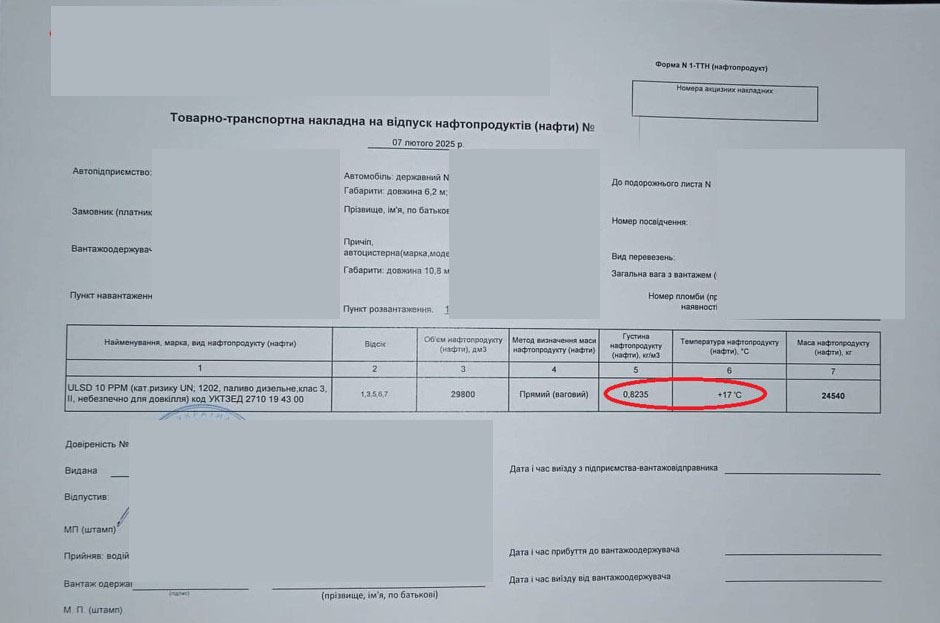 «Initially, the diesel temperature was not specified. We didn’t even think it needed to be controlled because everyone is currently loading within the range of 4-5°C, and that’s the norm. When noticed, they immediately contacted «BRSM», but didn’t receive a logical explanation from them,» recounted another affected trader from Kyiv.