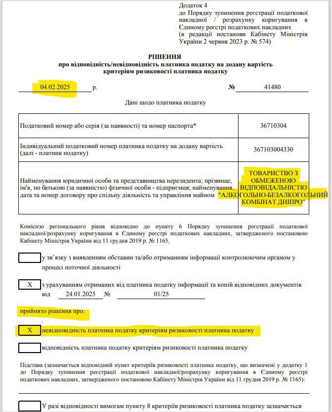 A month and a half later, on February 4, 2025, the tax authorities unexpectedly removed LLC "ABK Dnipro" from the risky companies list.