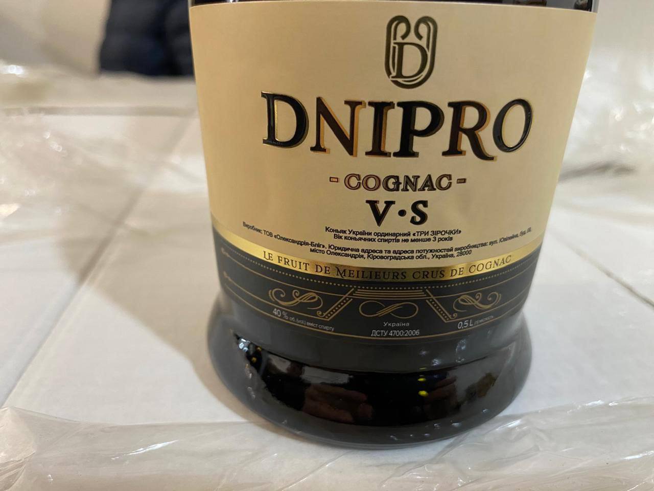 - Cognac "Dnipro" – under the guise of the product of LLC "Oleksandriia-Blih", without excise tax stamps.