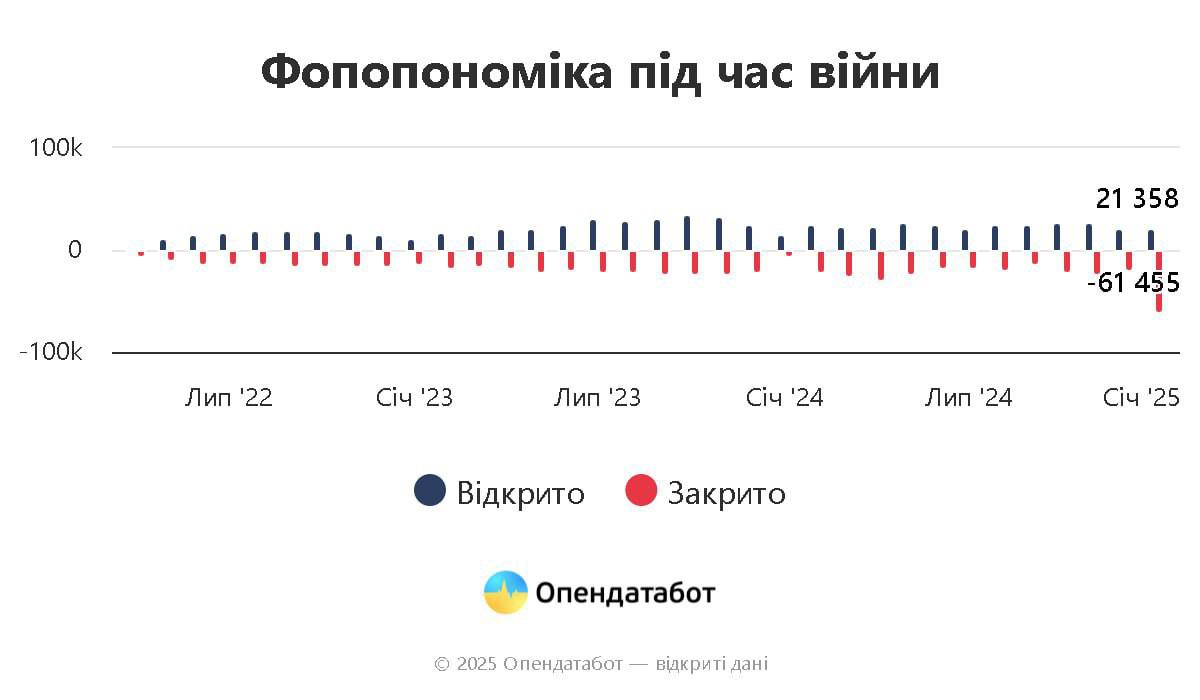 Since March 2022, more businesses have been opened as private entrepreneurs in Ukraine per month than have been closed. However, at the end of 2024, the situation changed due to increased tax burdens on entrepreneurs, reports the platform "Opendatabot".