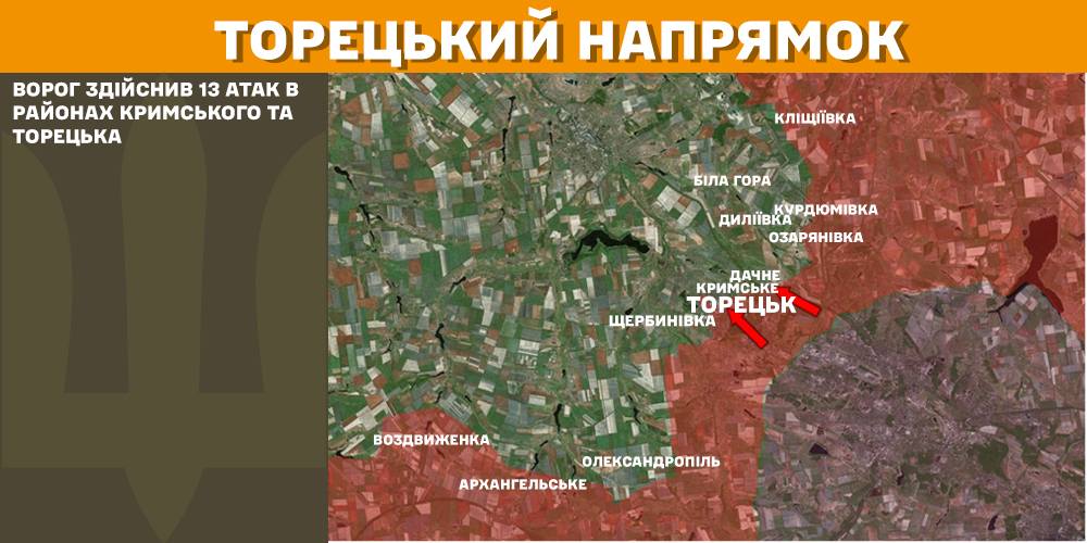 In the Toretsk direction the enemy carried out 13 attacks in the areas of Krymske and Toretska.